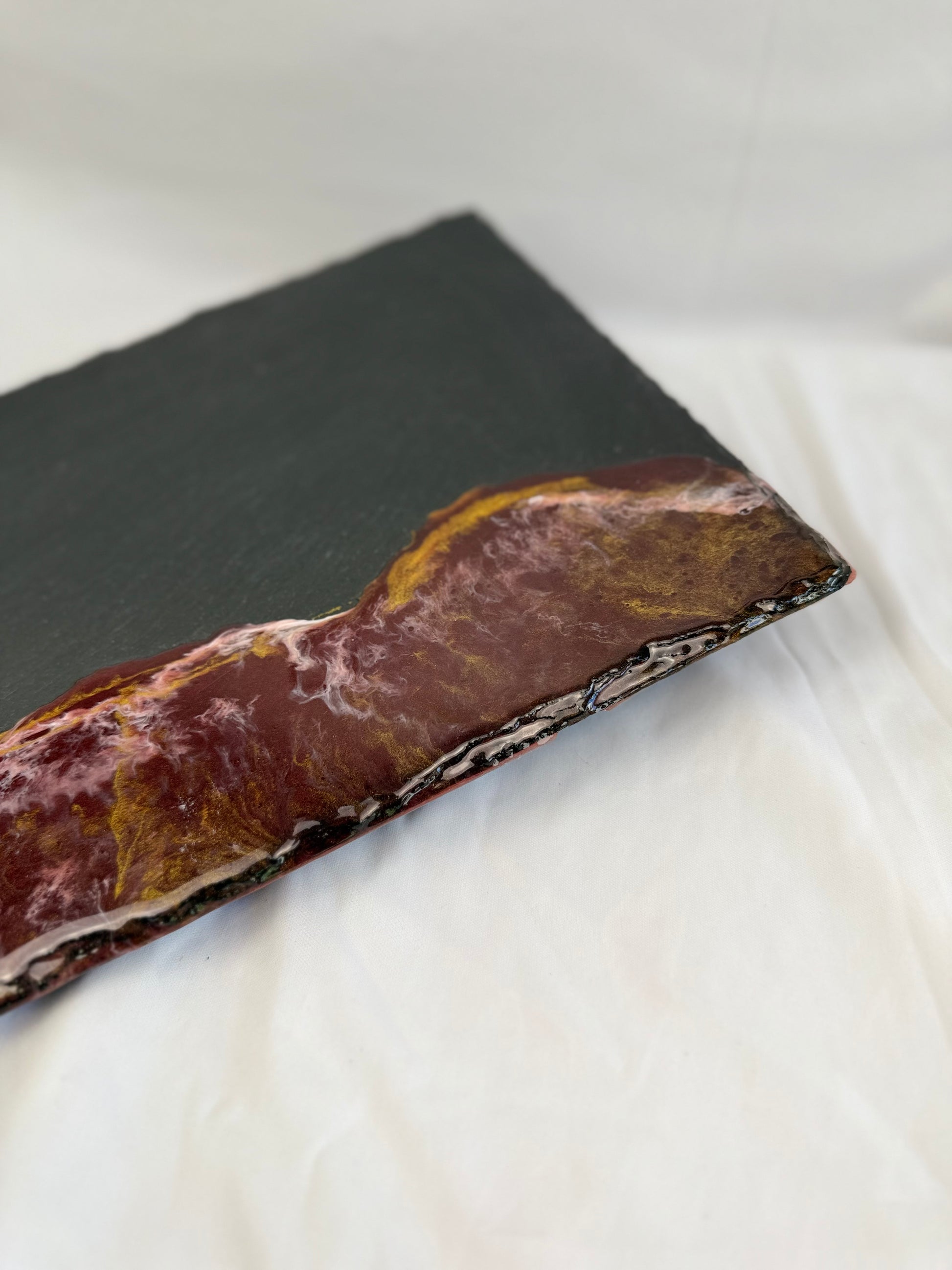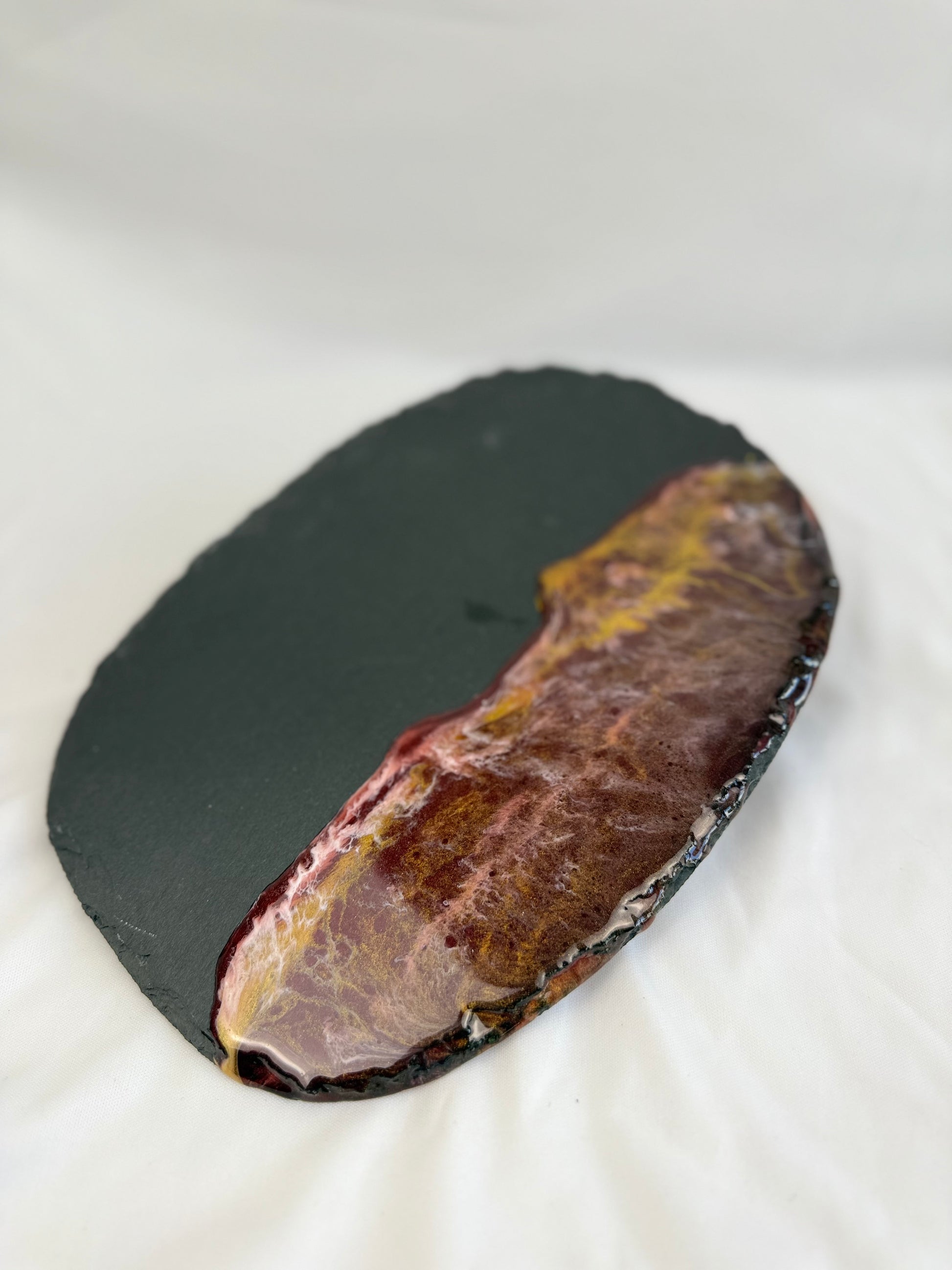 Essenza di Ardesia is a collection of decorative plates in natural slate, enriched with elegant castings of artisanal resin. Each piece is born from the encounter between raw material and creativity, transforming irregular shapes and natural surfaces into true works of art.